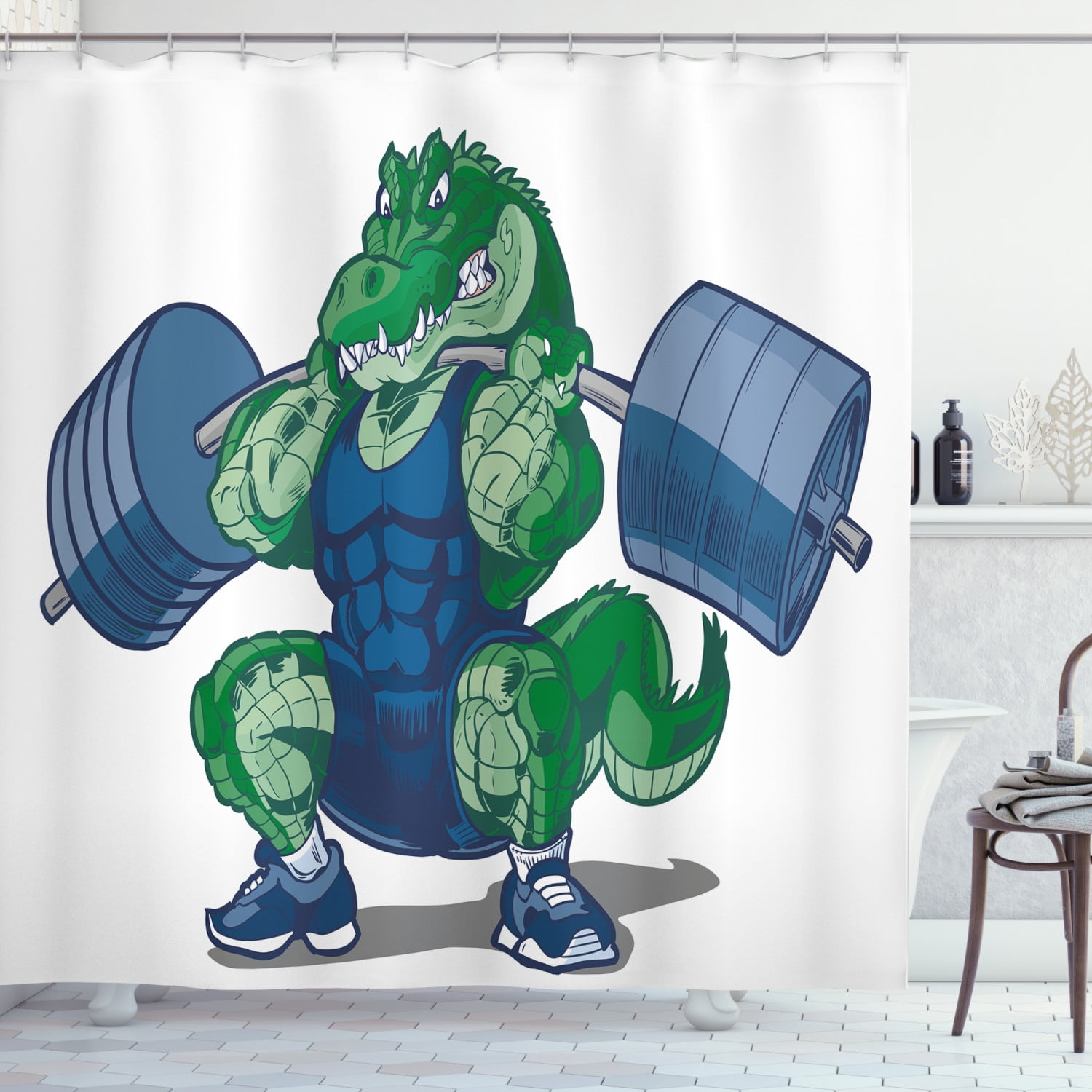 Kids Shower Curtain Cartoon African Crocodile Sporty Muscular Manly Alligator Villian Image Print Fabric Bathroom Set With Hooks 69w X 70l Inches Jade Green And Blue By Ambesonne Walmart Com